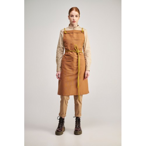 Ολόσωμη Ποδιά Modern σε χρώμα Cinnamon, με αποσπώμενα σετ Σχοινιά mustard