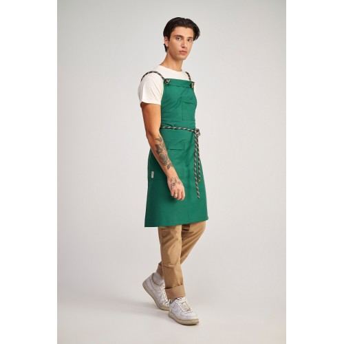 Ολόσωμη Ποδιά Modern σε χρώμα royal green , με σετ αποσπώμενα Σχοινιά check