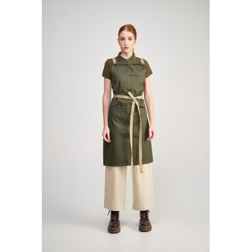 Ολόσωμη Ποδιά Modern σε χρώμα Olive, με σετ αποσπώμενα Λουριά Fishbone beige